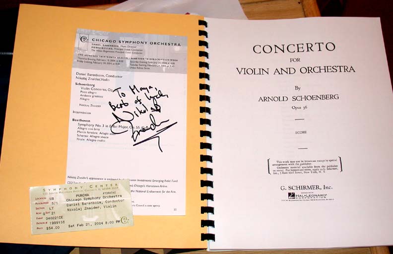 My Dad took me to this concert that had the Schoenberg Violin Concerto on it with Nikolaj Znaider playing the solo! It was soooo amazing...and I got his autograph! hehe :)